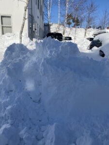 さて雪かきをしましょう、と朝外に出ると予想以上の雪の量と吹き溜まりにビックリ、しばらくぼーっと立つことしかできませんでした笑